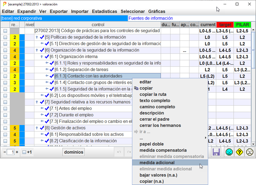 catálogo (de PILAR o del NIST); el nuevo control puede subir, bajar, o