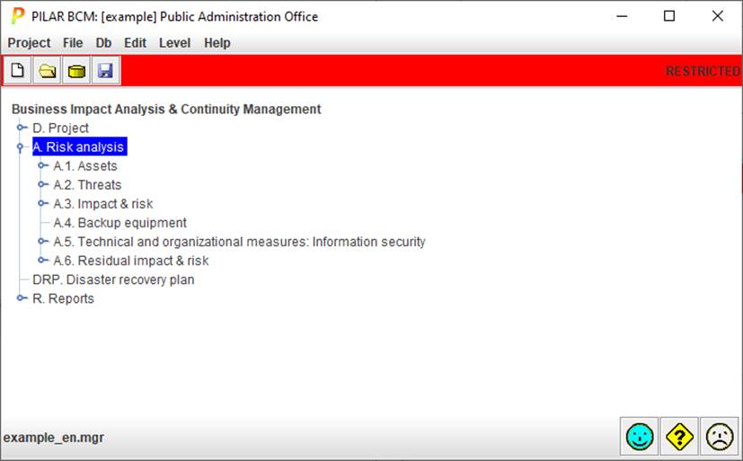 Assets / IdentificationAssets / Edit one assetAssets / SourcesAssets / ClassesAssets / DependenciesAssets / Valuation – BIA (Business Impact Analysis)Backup equipment