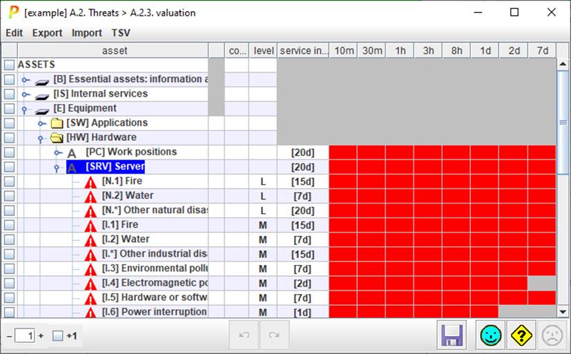 This section explains the behaviour for manual mode. If it is automatic, most options are disabled since PILAR automatically applies the standard values from the TSV file (See “Threat Standard Values”).
