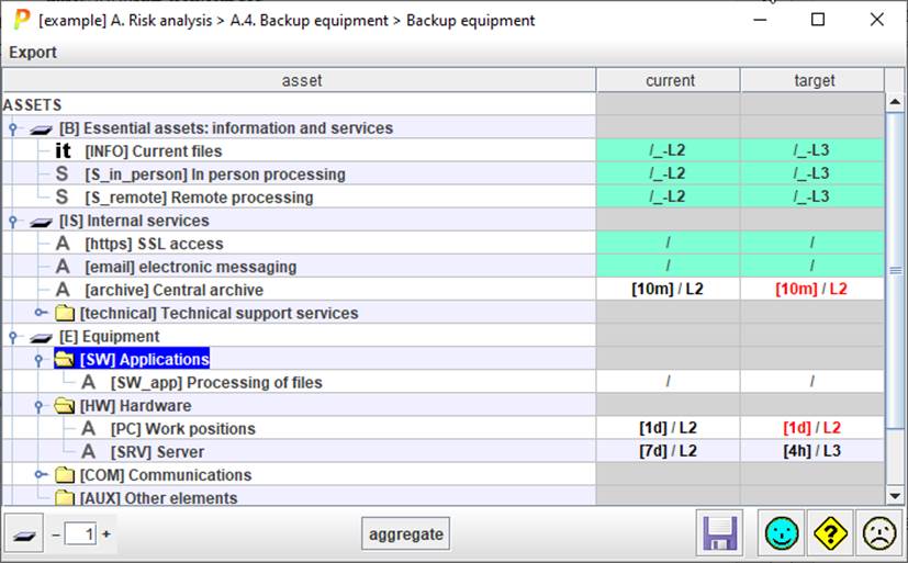 In order to simplify data entry, PILAR may accept that some assets are not evaluated