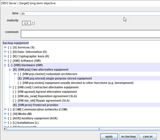 Either double-click or right-click fire the edition screen for backup equipment.