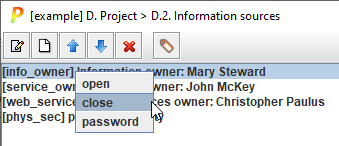 You may right-click on an information source to manage an associated password: