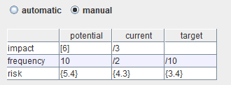 reducing ratio. PILAR calculates the risk given the estimated impact and likelihood.