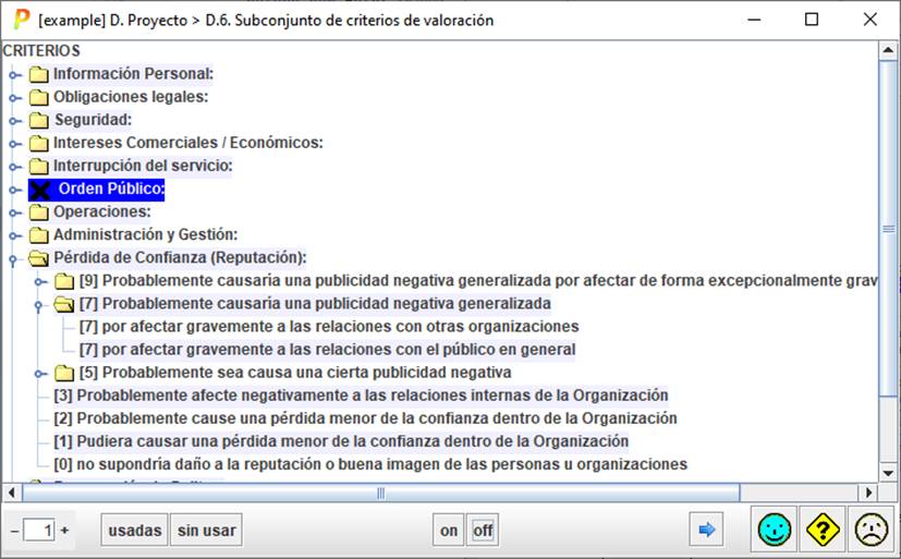 Selecciona aquellos criterios que se utilizan actualmente en el proyecto de análisis de riesgos. |
