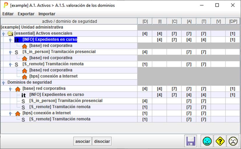 Cada dominio hereda la valoración de los activos esenciales que contiene y de los asociados a él.