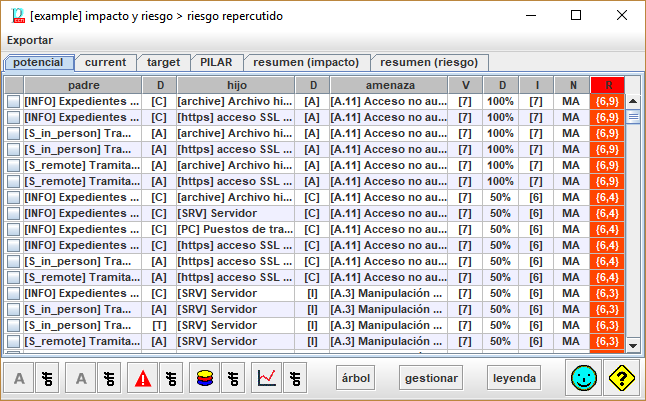 Para las filas seleccionadas en la columna 1, PILAR recolecta los riesgos asociados y salta a la ventana de valoración de salvaguardas, teniendo en cuenta solo dichos riesgos. |
