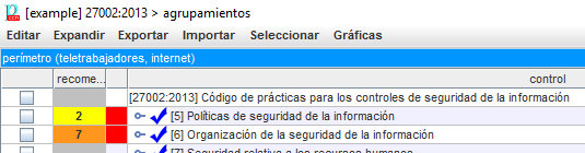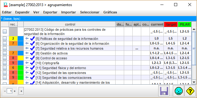 La pantalla de agrupamientos es bastante similar a la de valoración, pero solo permite leer datos: