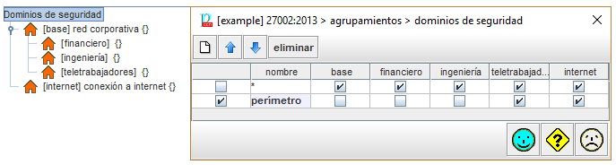 En la banda azul superior, el usuario puede editar y seleccionar agrupamientos. Por defecto, siempre hay un grupo que incluye todos los dominios