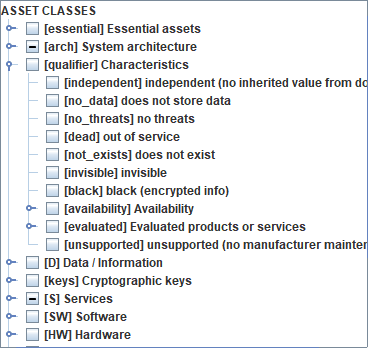 You may enable / disable an asset. If it does not exist, it is ignored for the risk analysis. |