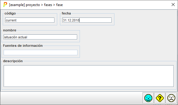 (opcional) una fecha, de forma que se asocia un concepto abstracto como es una fase del proyecto a un calendario real. El formato es día . mes . año |