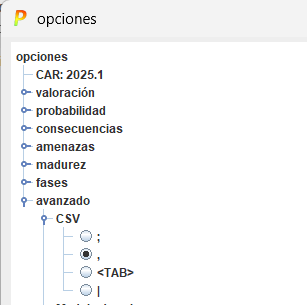 Editar / Opciones Opciones – CSV Puede seleccionar el carácter utilizado para separar columnas al exportar datos a CSV.