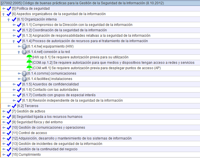 Y entrando en el perfil, nos encontramos con los controles de la norma asociados a las salvaguardas de PILAR: