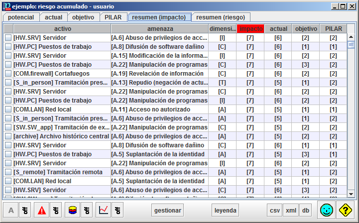 Análisis de riesgosImpacto y RiesgoTabla de impacto y riesgo acumulado Resumen de impacto PILAR presenta la evolución del impacto a lo largo de las fases del proyecto:
