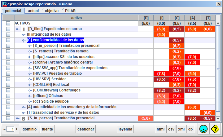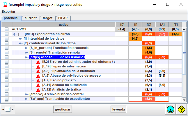 La pseudo-fase POTENCIAL muestra el riesgo potencial (sin salvaguarda alguna).