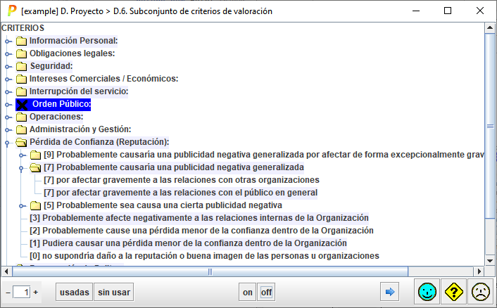 Selecciona aquellos criterios que se utilizan actualmente en el proyecto de análisis de riesgos. |