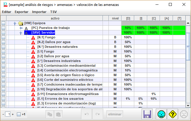 Aplica el TSV correspondiente a los activos / amenazas seleccionados |