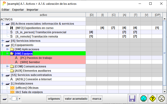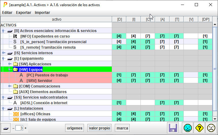Para cada activo esencial y cada dimensión de seguridad, el valor