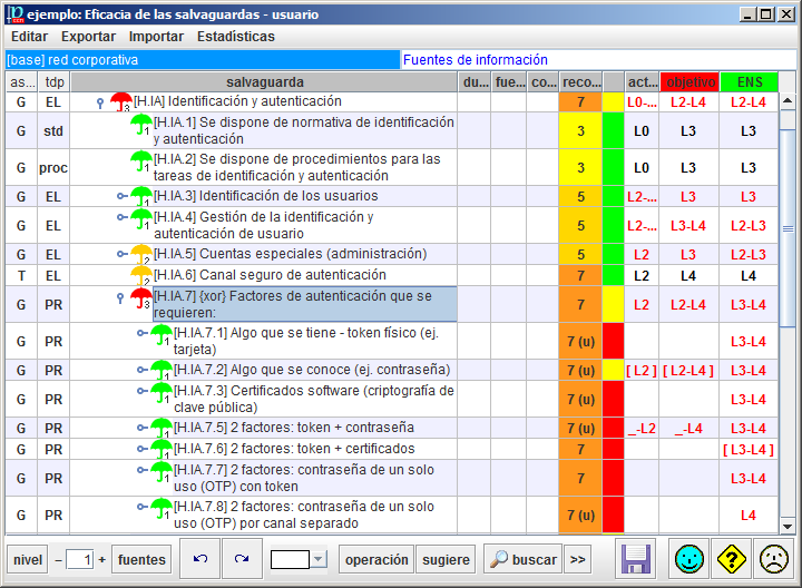 El valor es un nivel de madurez en el rango L0 a L5, o una marca de no aplicabilidad (n.a.), o está vacío. A efectos matemáticos, “n.a.” es como si la salvaguarda no existiera.
